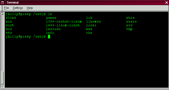 [billy@localhost /usr]$ ls